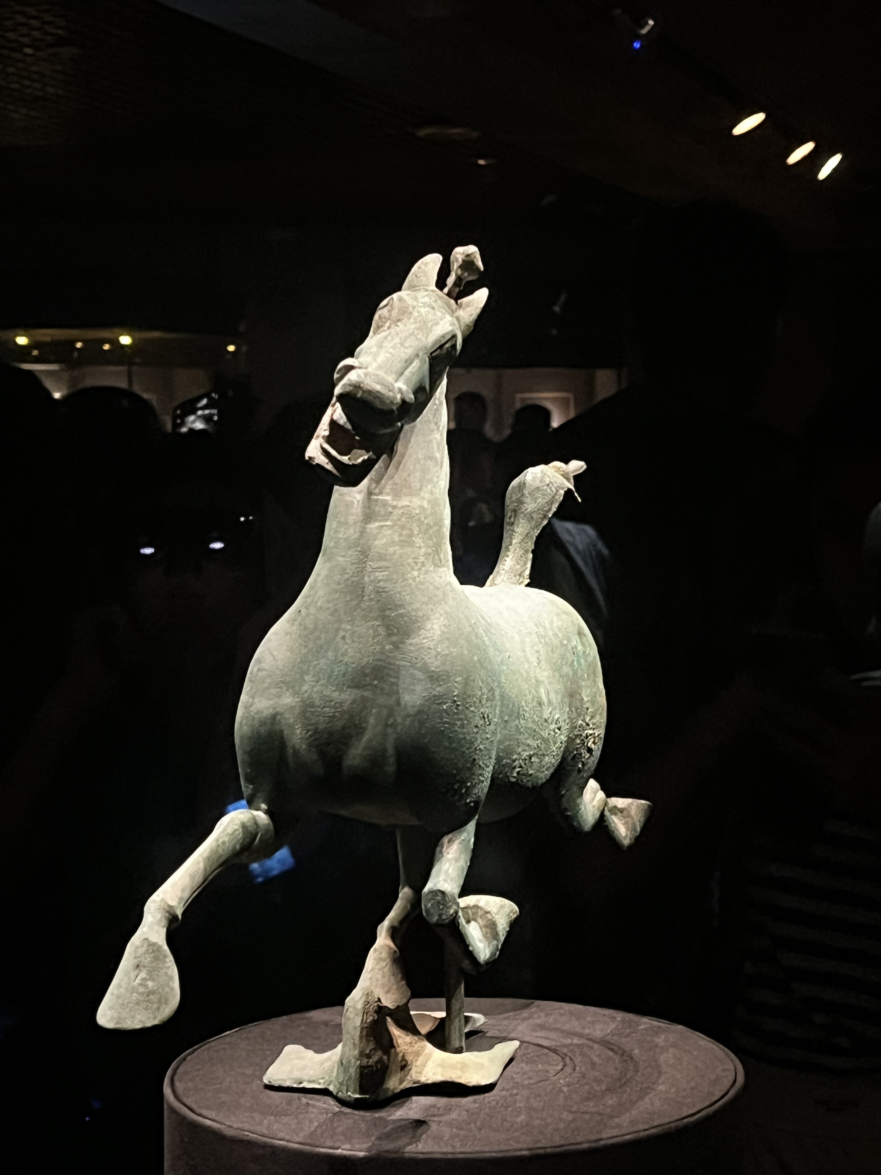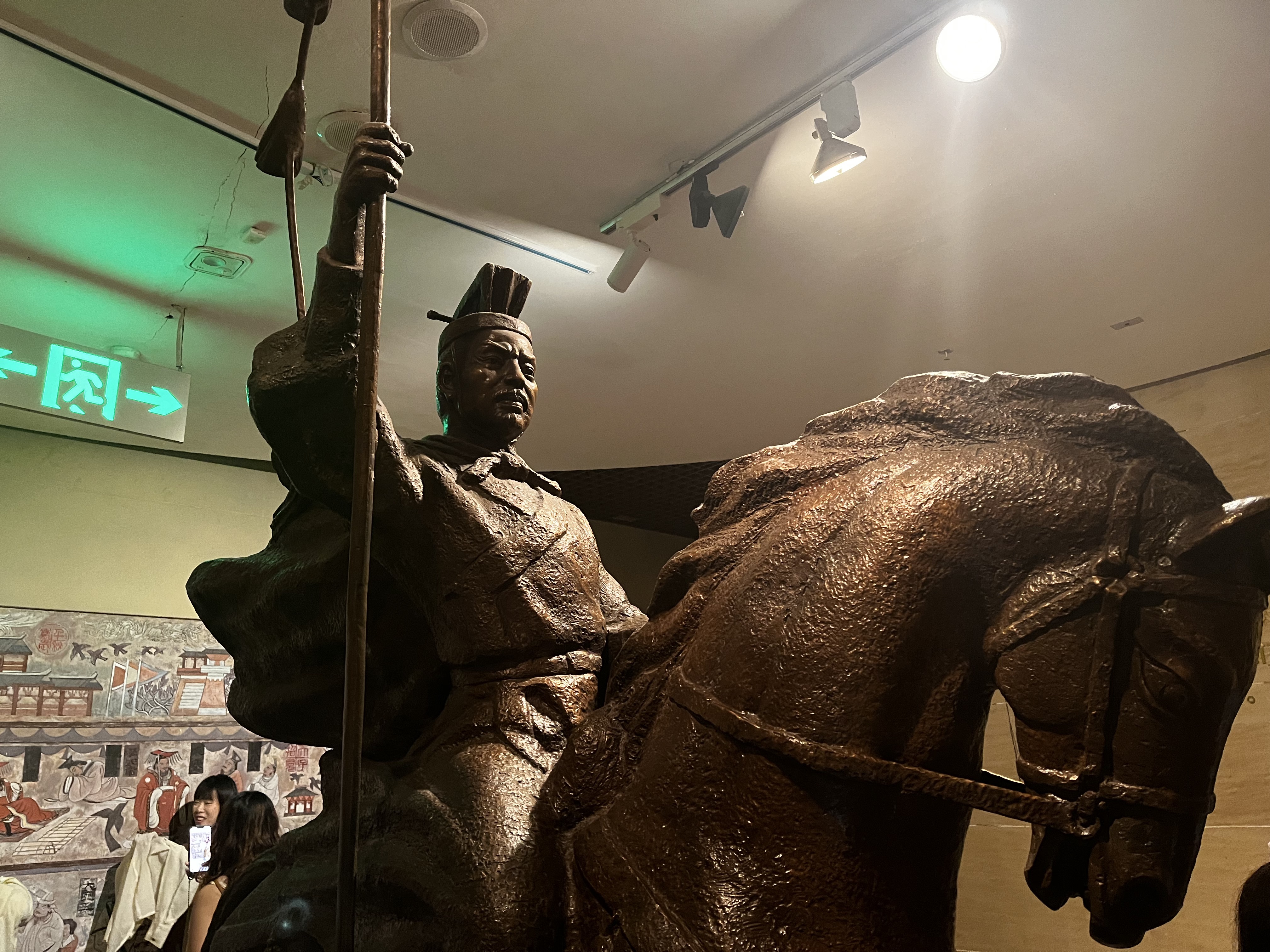 早晨经典甜胚子奶茶开局,感觉在这再待几天得得糖尿病。先去飞天酒店放了行李(还没到入住时间),随后直奔甘肃省博物馆,看到了曾经在课本上见过的铜奔马和驿使图。在里面参观的时候室友给我发消息说没带房卡,让我到酒店的时候跟他说声帮他开个门,难绷。